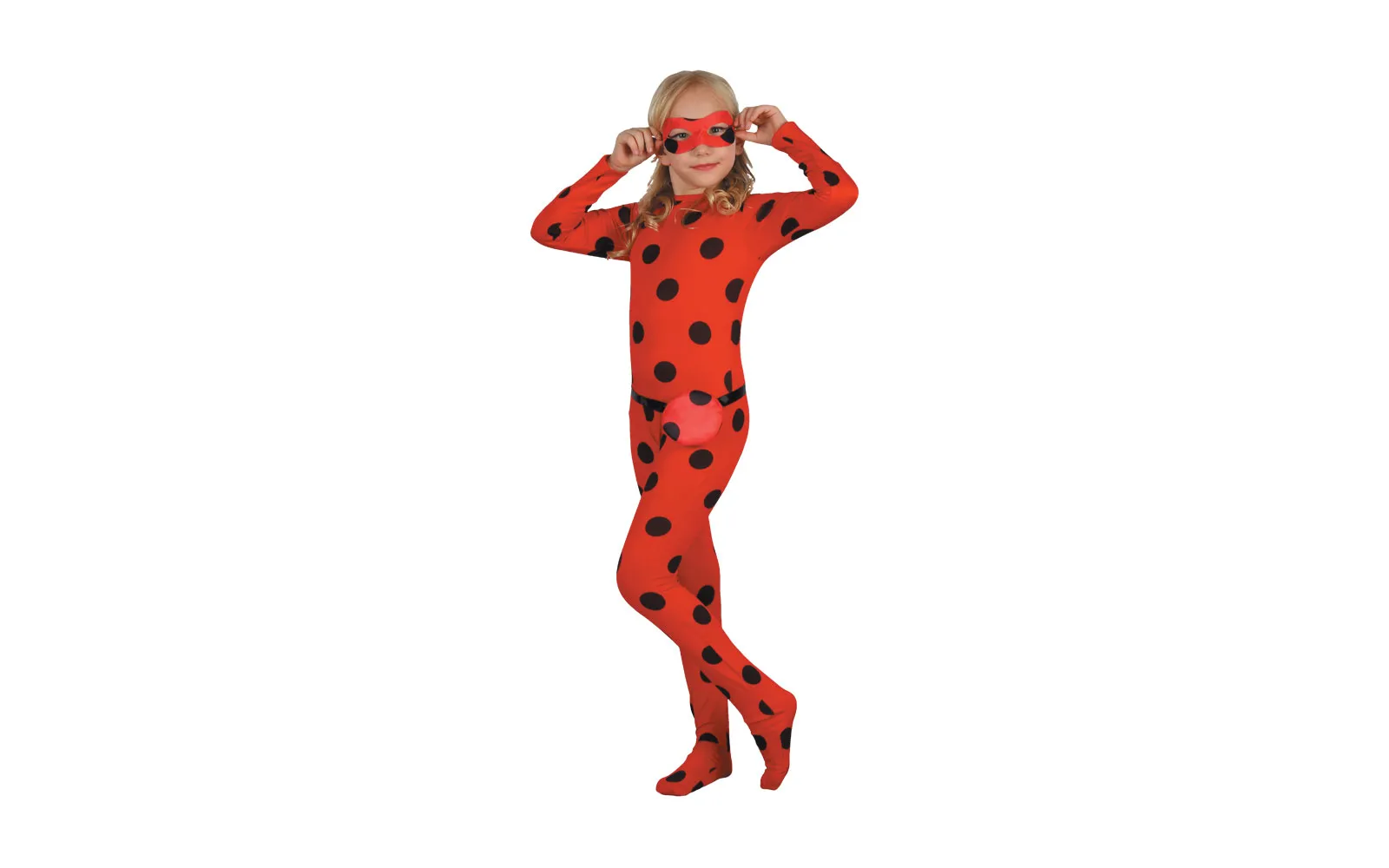 Pustni kostum pikapolonica vsebuje kombinezon, pas in masko za oči. Velikosti S (110-120 cm), M (120-130 cm) in L (130-140cm). Vsebina: kombinezon, maska za oči. Sestava: 100% POLIESTER