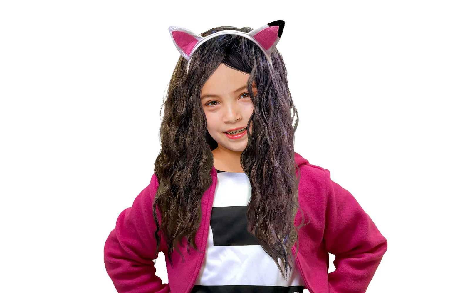 Kodrasta črna lasulja, Cat. Nadenite si to očarljivo otroško kodrasto črno lasuljo in zasijte kot prava pustna šemica.