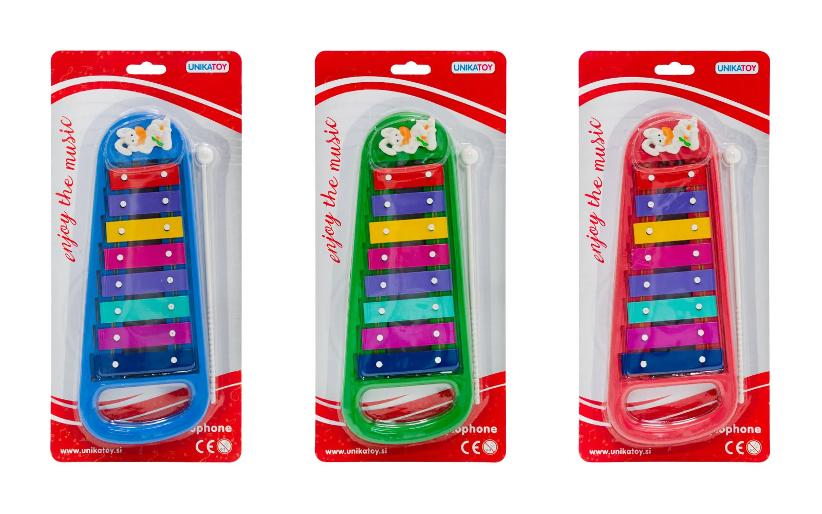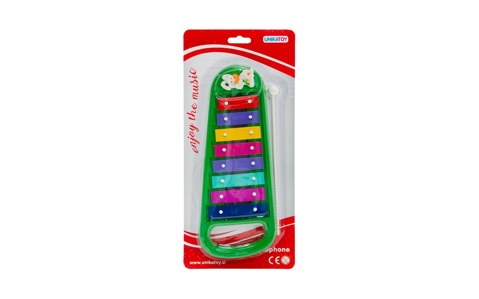 Preprosta uporaba za prve korake v svet glasbe je ksilofon velikosti 29 cm v zeleni, modri ali rožnati barvi.