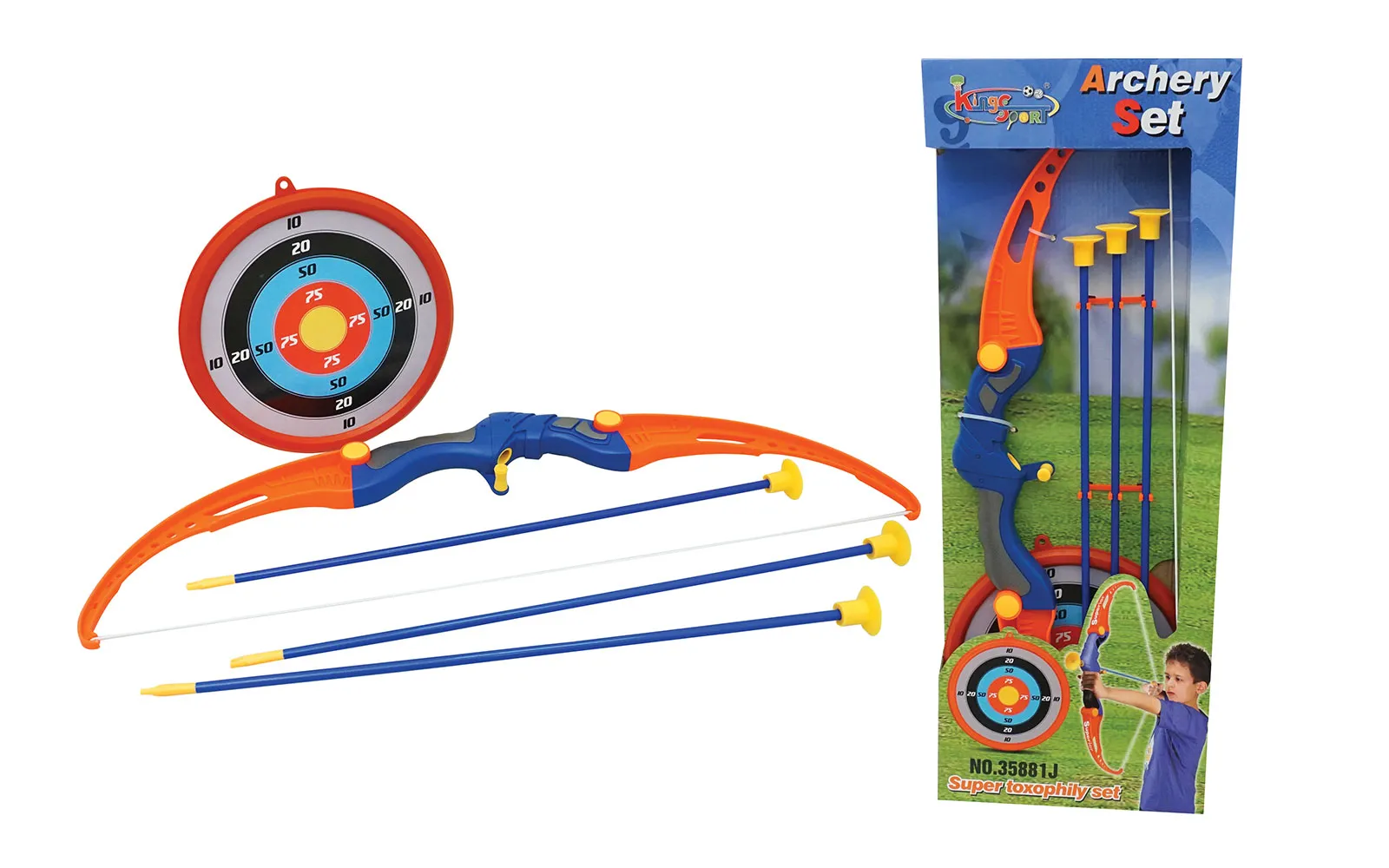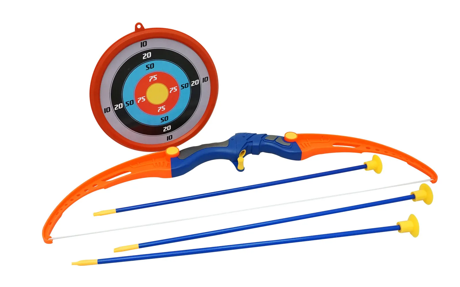 Preveri mirnost svoje roke, natančnost pogleda s setom, ki vsebuje lok, tarčo ter tri puščice. Pazi! Nikoli ne streljaj v smeri oseb ali živali. Nikoli v oči ali v obraz.
