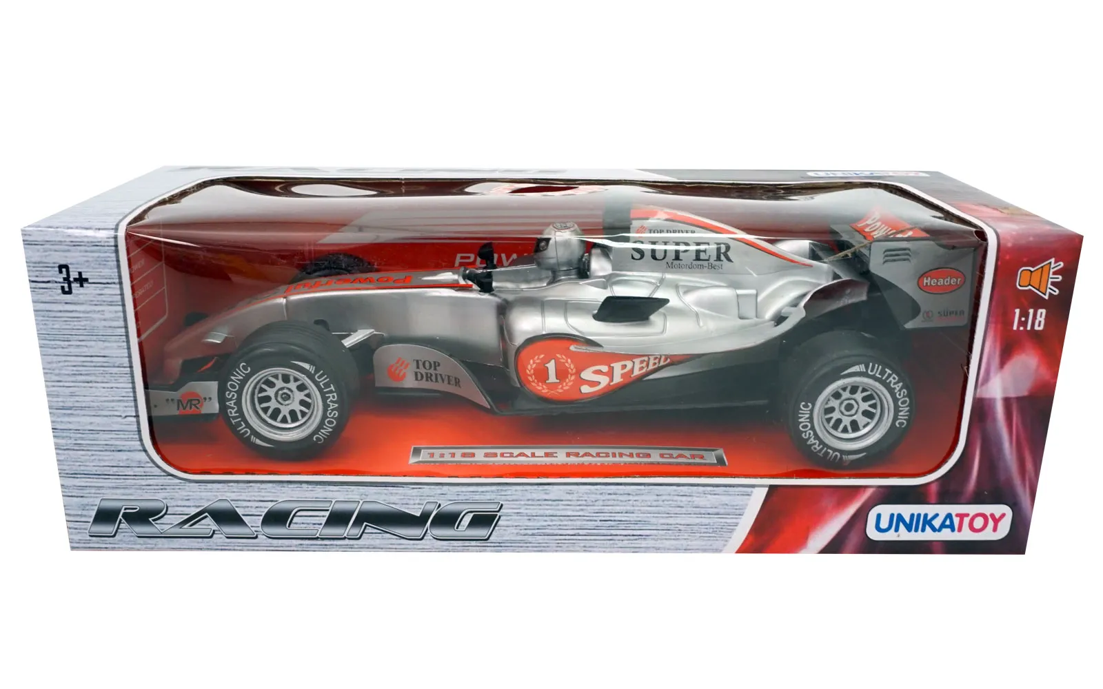 Rdeča, modra ali srebrna formula z zvokom velikosti 25 cm ima tudi voznika. Za delovanje potrebuje 3 baterije tipa LR44 1.5 V, ki so priložene v demonstracijske namene.