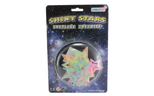Set treh različnih svetlečih likov z zvezdicami, luno različnih barv in velikosti. Svetleče zvezdice lahko prilepite na vrata, svetilke, razne aparate, na stropove, okna ter na druge gladke, čiste površine. Čez dan ali pod lučjo se napolnijo s svetlobo in svetijo v temi.