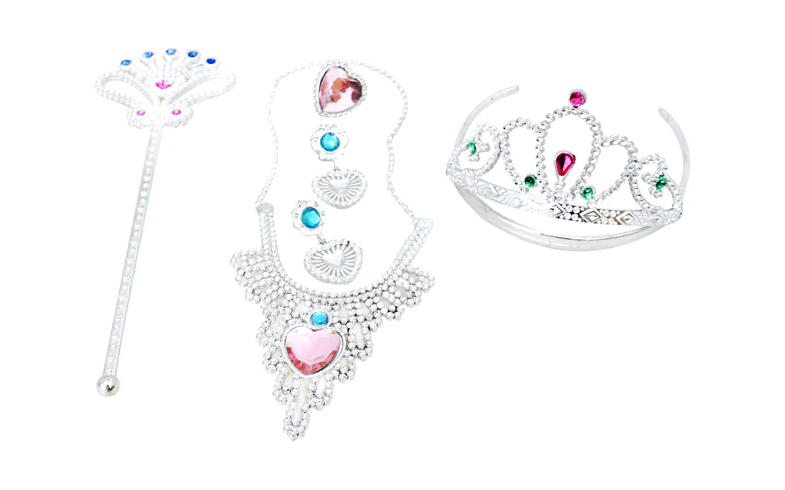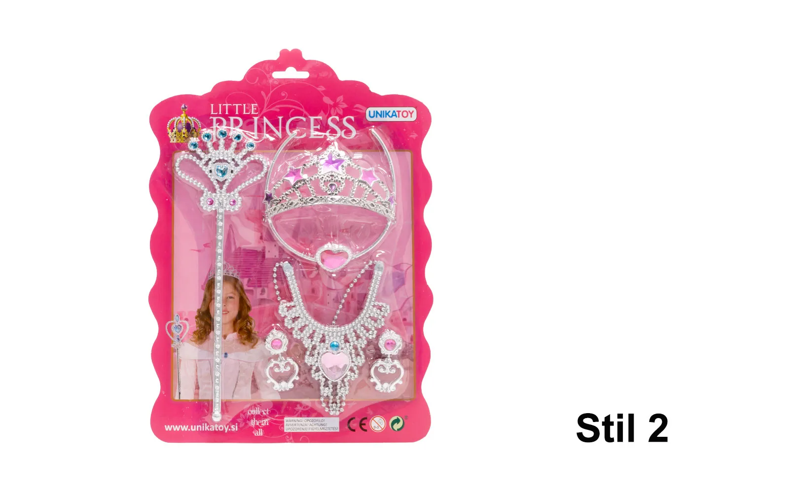 Princeskina zabava naj se prične s setom nakita dveh različnih stilov, ki vsebuje palico, kronco, ogrlico in uhane.