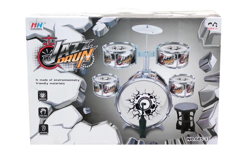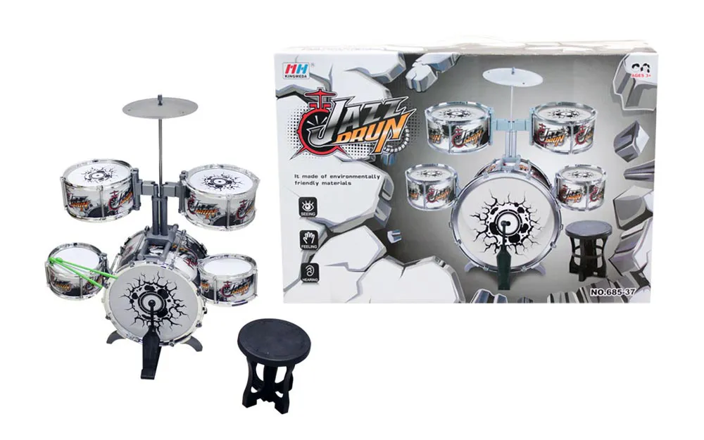 BOBNI JAZZ SET VELIKI! Zaigraj poskočno melodijo na bobnih in povabi prijatelje na koncert! S tem kompletnim bobnarskim setom lahko ustvariš svojo lastno glasbeno predstavo. Komplet vključuje bas boben, dva srednja in dva mala bobna, nožni pedal, činele, dve palici in stolček. Vse je pripravljeno za zabavo in ustvarjanje glasbe! VRHUNSKI BOBNI ZA MLADE GLASBENIKE. Z dimenzijami, ki omogočajo otrokom preprost dostop do igranja, ta set zagotavlja odlično glasbeno izkušnjo. Bobni so zasnovani tako, da zagotavljajo stabilnost in udobje, medtem ko so činele popolna izbira za poskočne ritme. ZABAVA ZA VSO DRUŽINO: Set bobnov ponuja vse, kar potrebuješ za ustvarjanje energičnih in zabavnih koncertov. Zasnovan je tako, da omogoča enostavno igranje, a hkrati spodbuja otrokov razvoj in ljubezen do glasbe. VSEBINA KOMPLETA: bas boben, dva srednja in dva mala bobna, nožni pedal, činele in dve palici, stolček (ni primeren za otroke težje od 48 kg). Set bobnov Jazz je popolna izbira za vse mlade glasbenike, ki želijo začeti svojo glasbeno pustolovščino in se zabavati ob ustvarjanju ritmov! Idealno za vse otroke, ki radi ustvarjajo glasbo in se zabavajo ob tem!