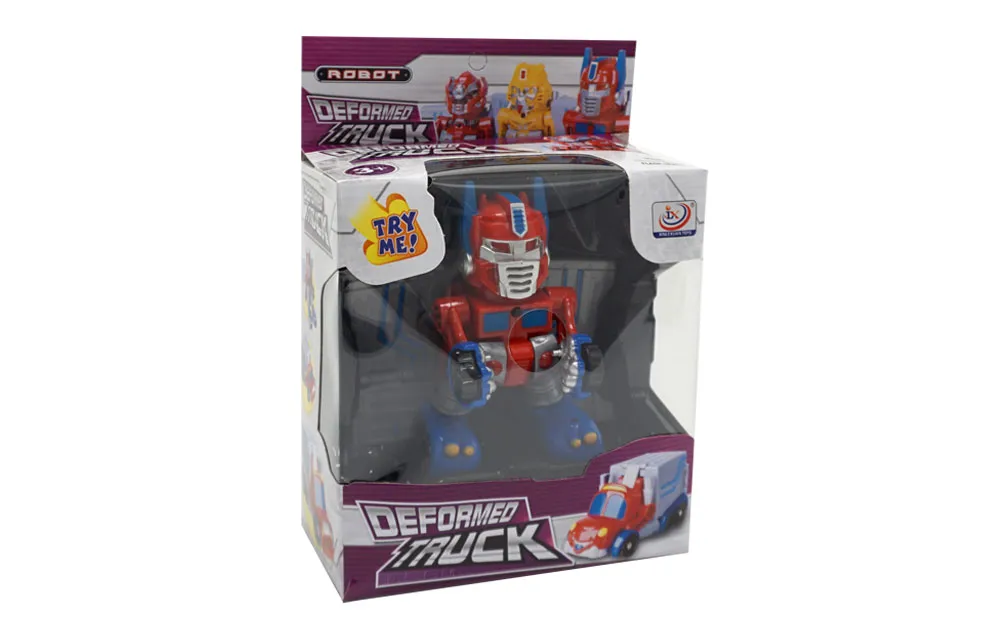 Robot, ki se spremeni v kamion, ima zvok in utripajoče luči. 3 različni stili. Za delovanje potrebuje 3 baterije tipa LR41 1.5V - priložene v demonstracijske namene.