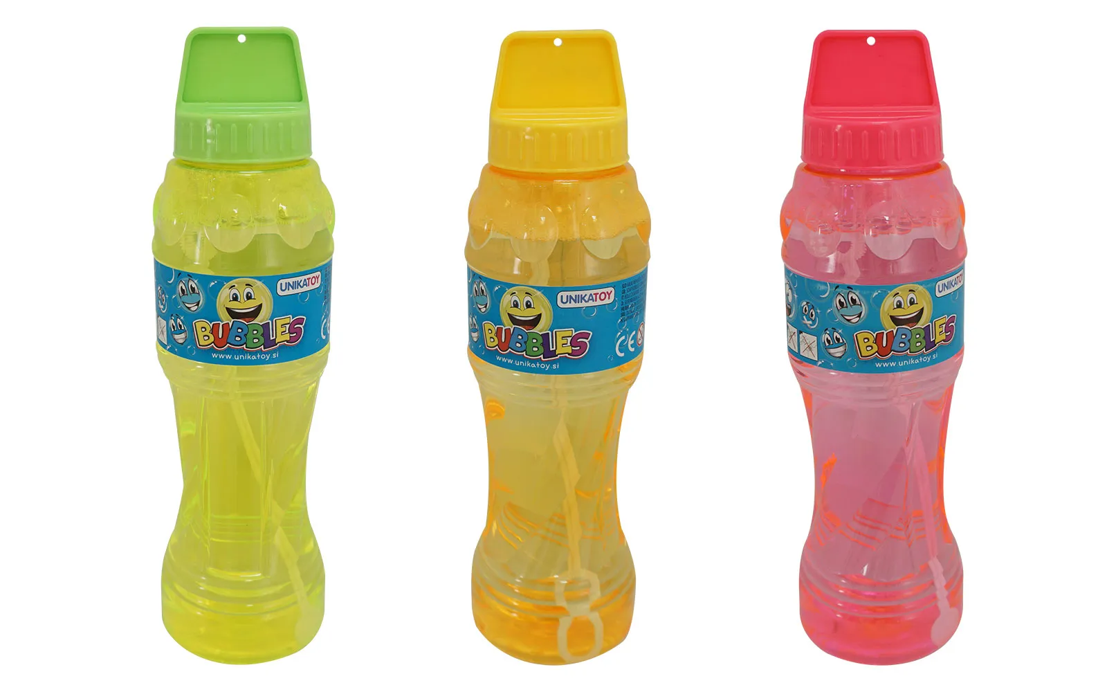 Globo vdihni in pihni, da se oblikuje krasen milni balonček, ki leti po zraku. 1 liter tekočine za milne mehurčke v pvc plastenki roza, rumene ali zelene barve. Tekočini je priložena tudi paličica za oblikovanje, pihanje mehurčkov.