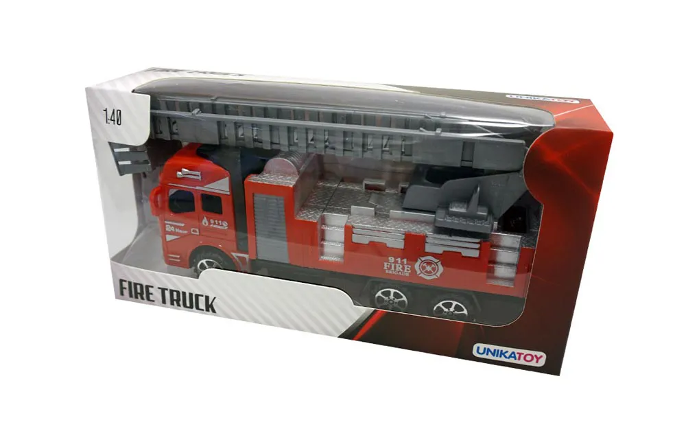 Frikcijski gasilski kamion velikosti 20 cm dveh različnih stilov s premično lestvijo.