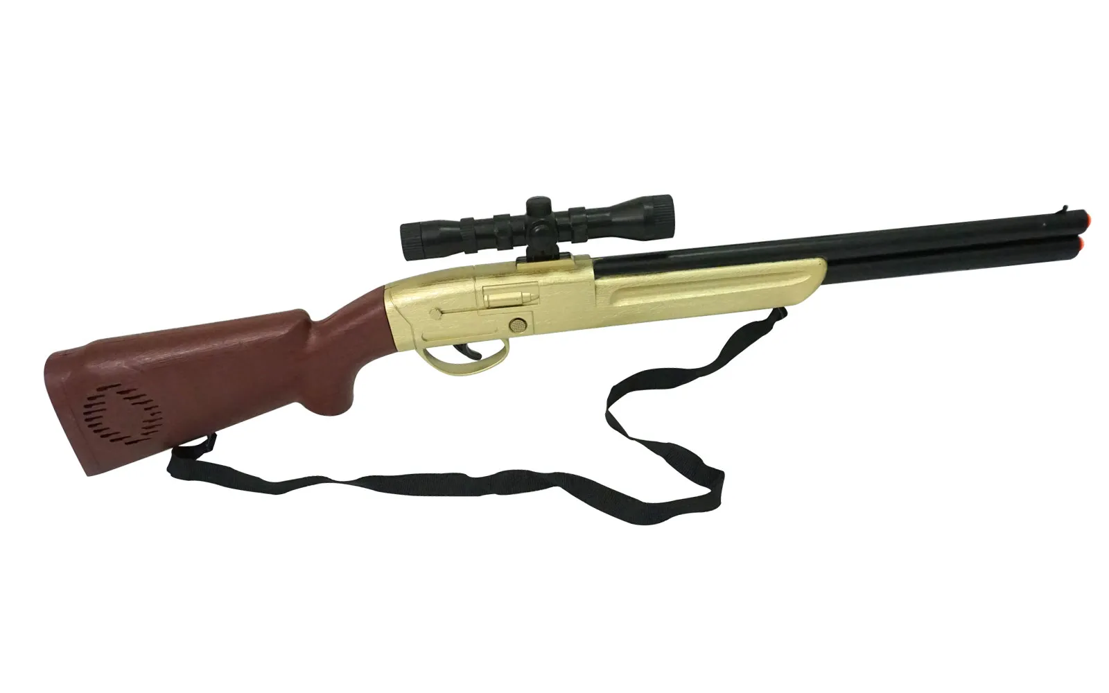 Plastična puška velikosti 66 cm črne ali rjave barve.