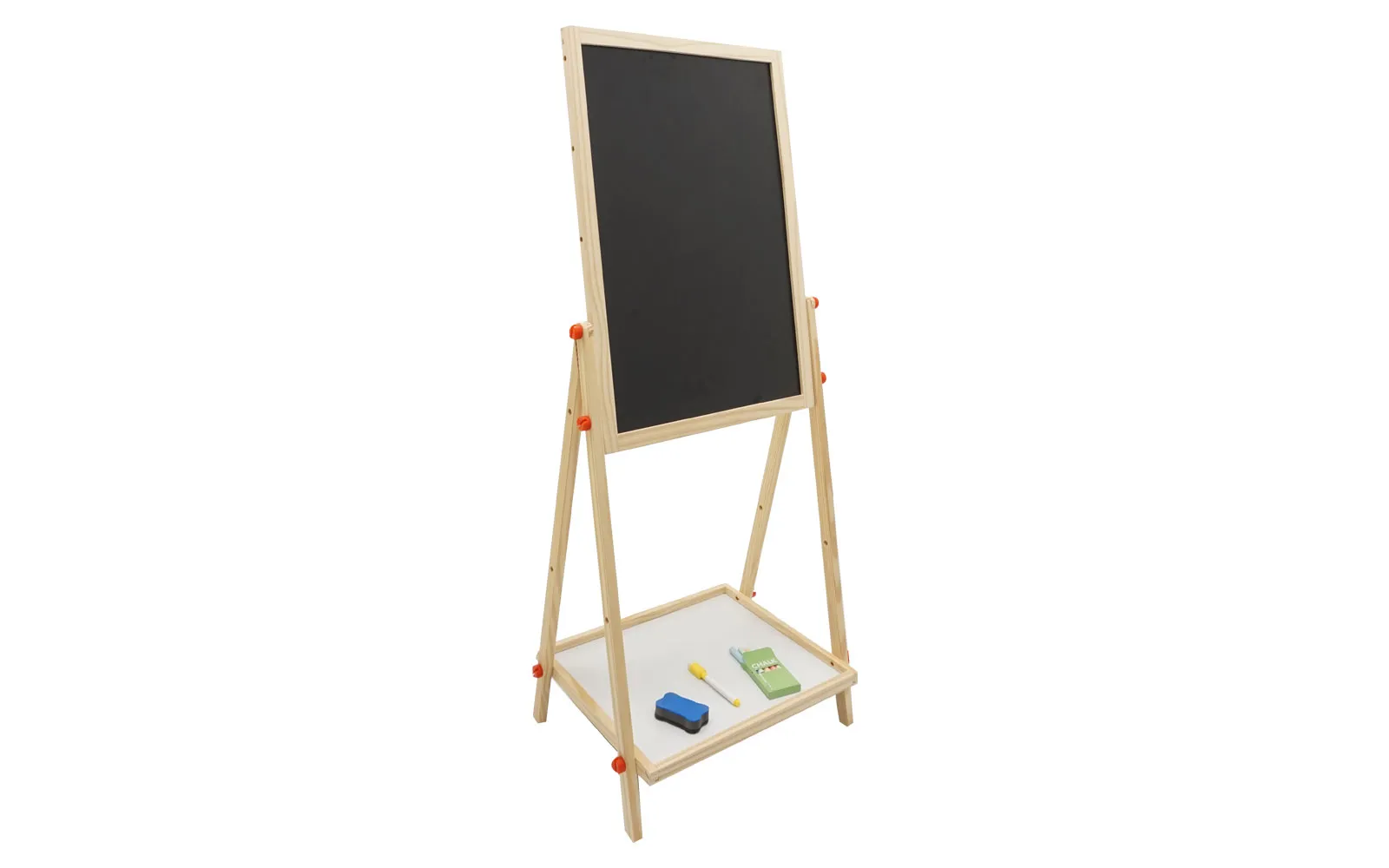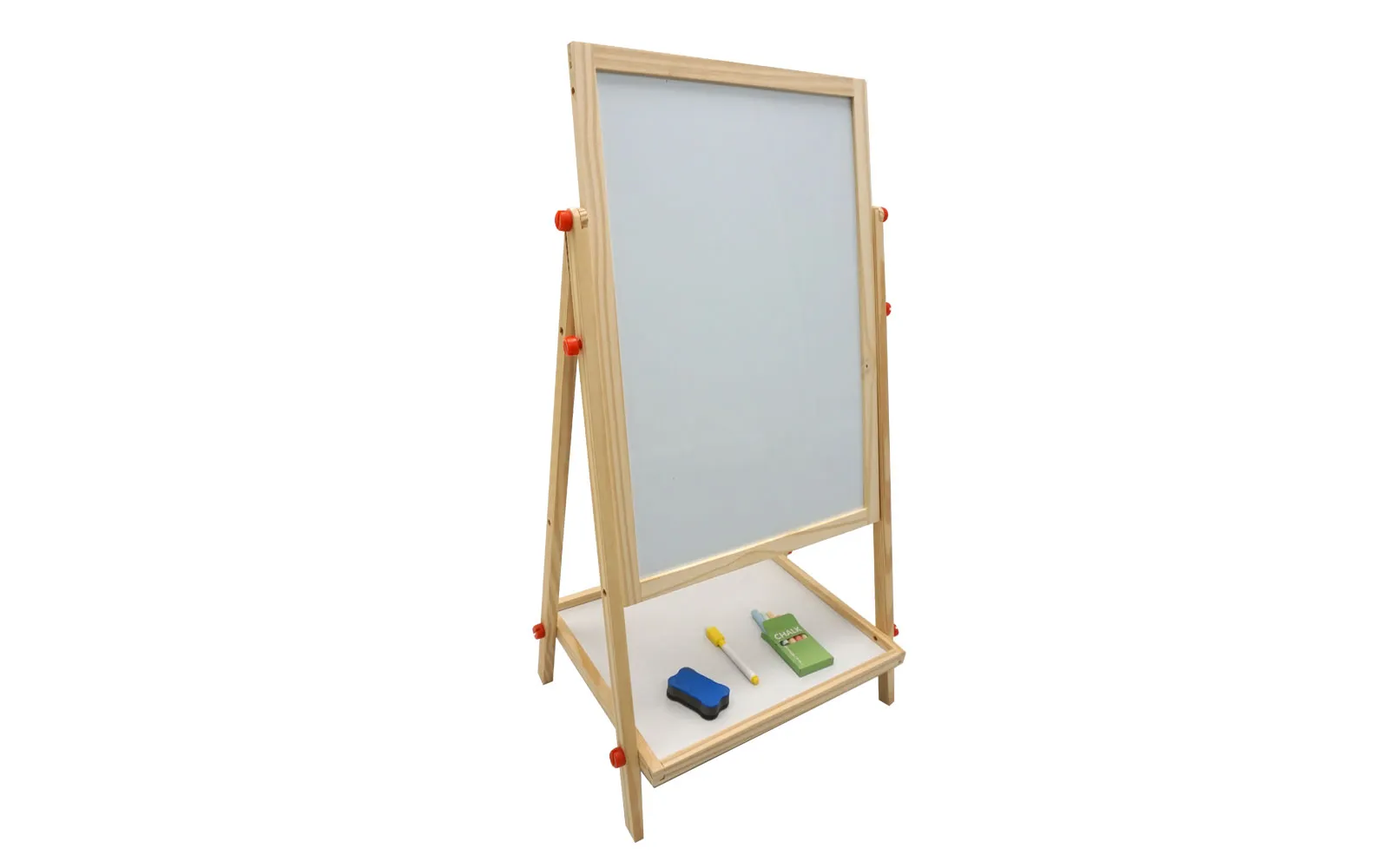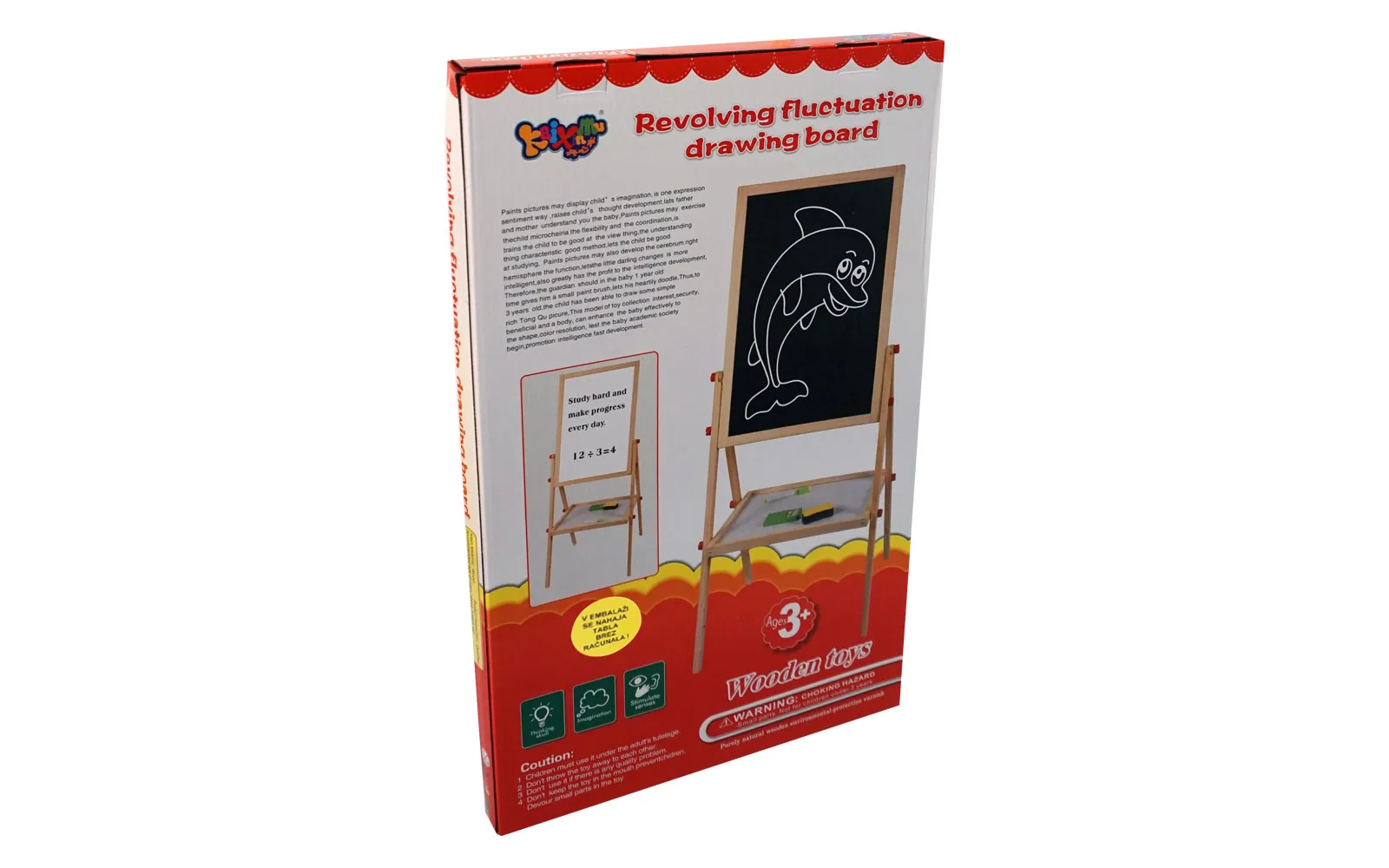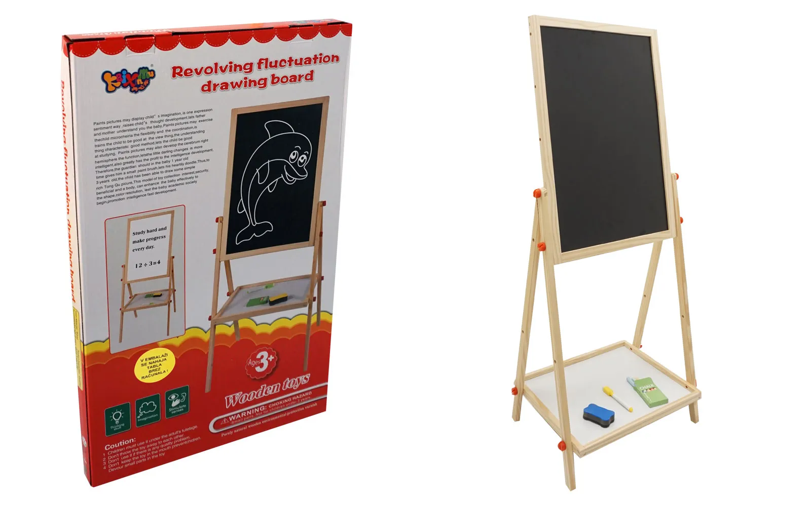 Magnetna lesena tabla s pripomočki je nastavljiva po višini. Dimenzije 40x67/86 cm. Dimenzija risalne, pisalne površine je 53.5x36 cm. Tablo se lahko uporablja na dveh različnih ploskvah.