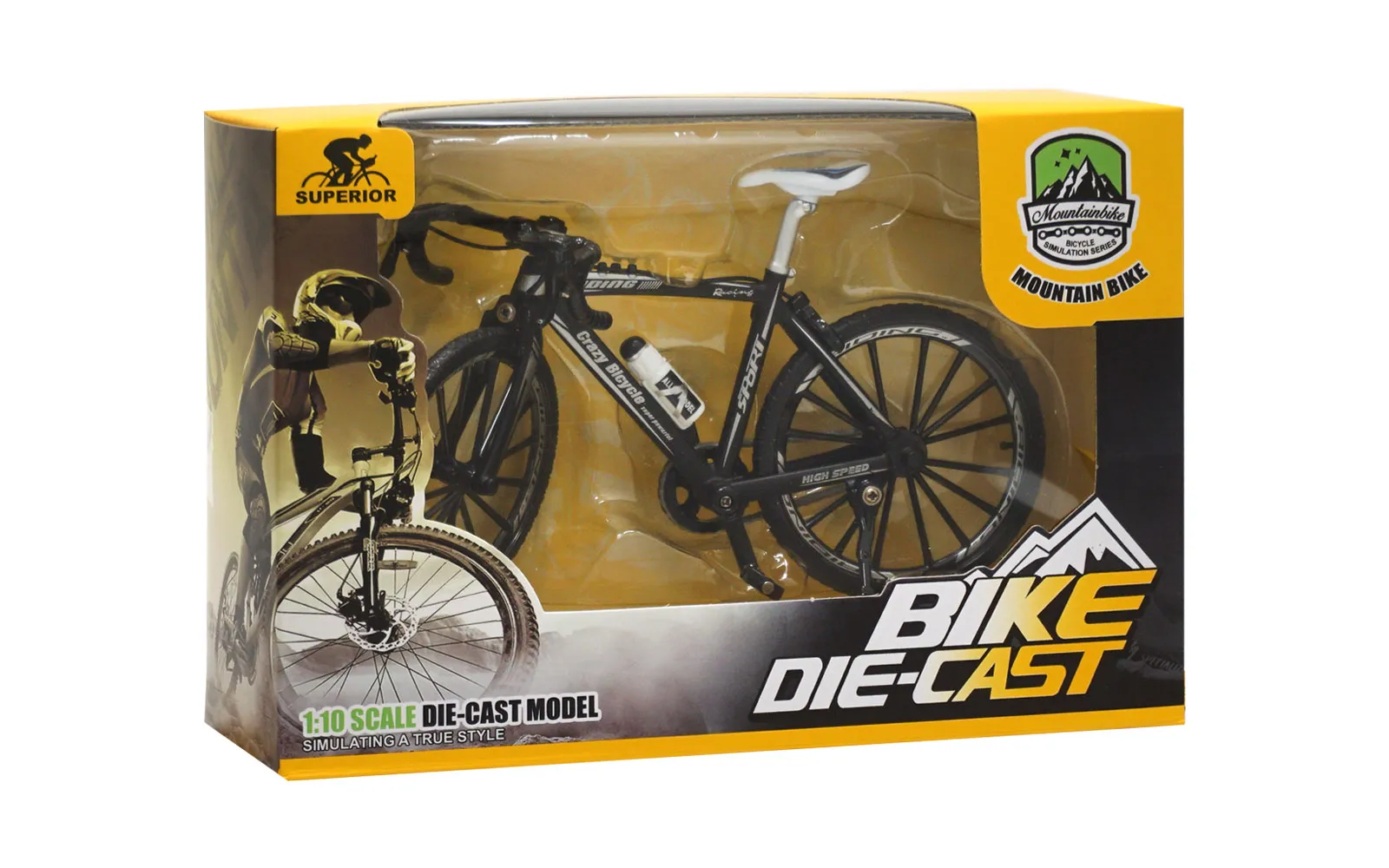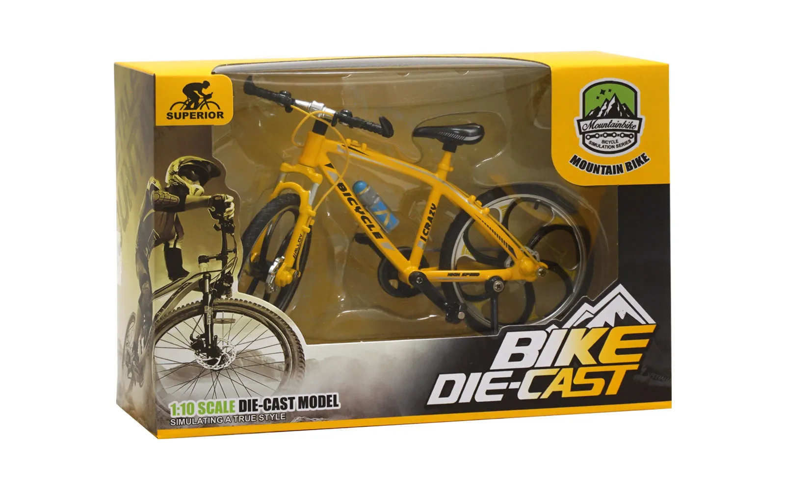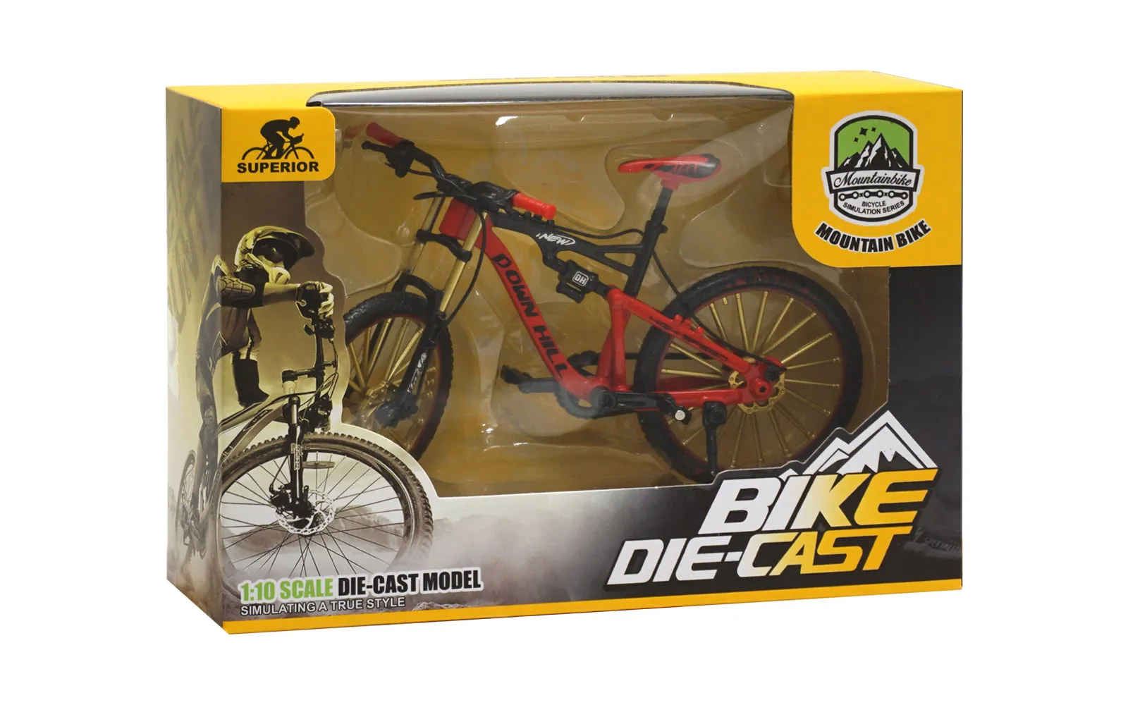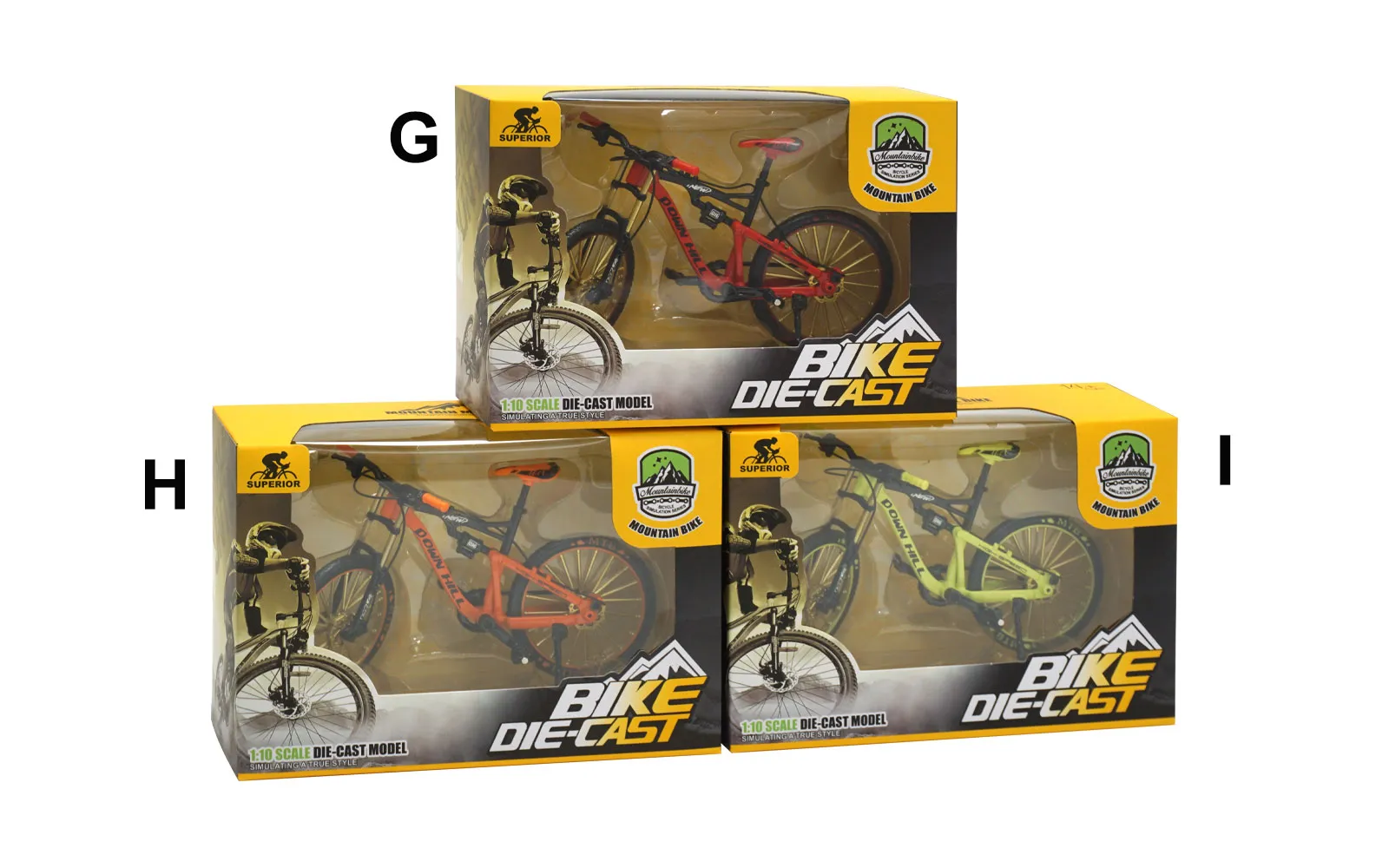 Raznovrstna kompaktna kolesa iz die cast materiala. Robustna cestna, gorska in down hill kolesa vas bodo pripeljala na vsako destinacijo! 17,5x6,5x11 CM. Na voljo v treh različnih barvah: oranžna, rumena ali rdeča.
