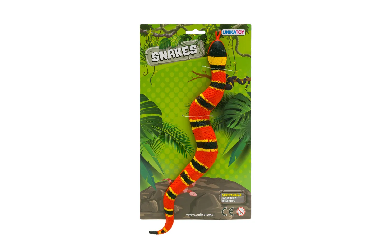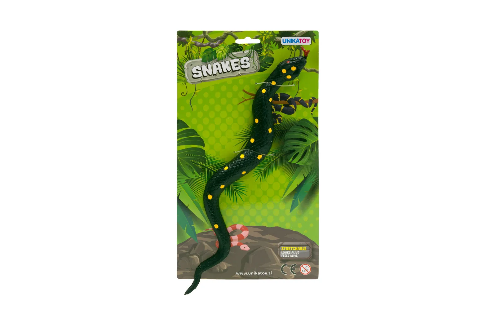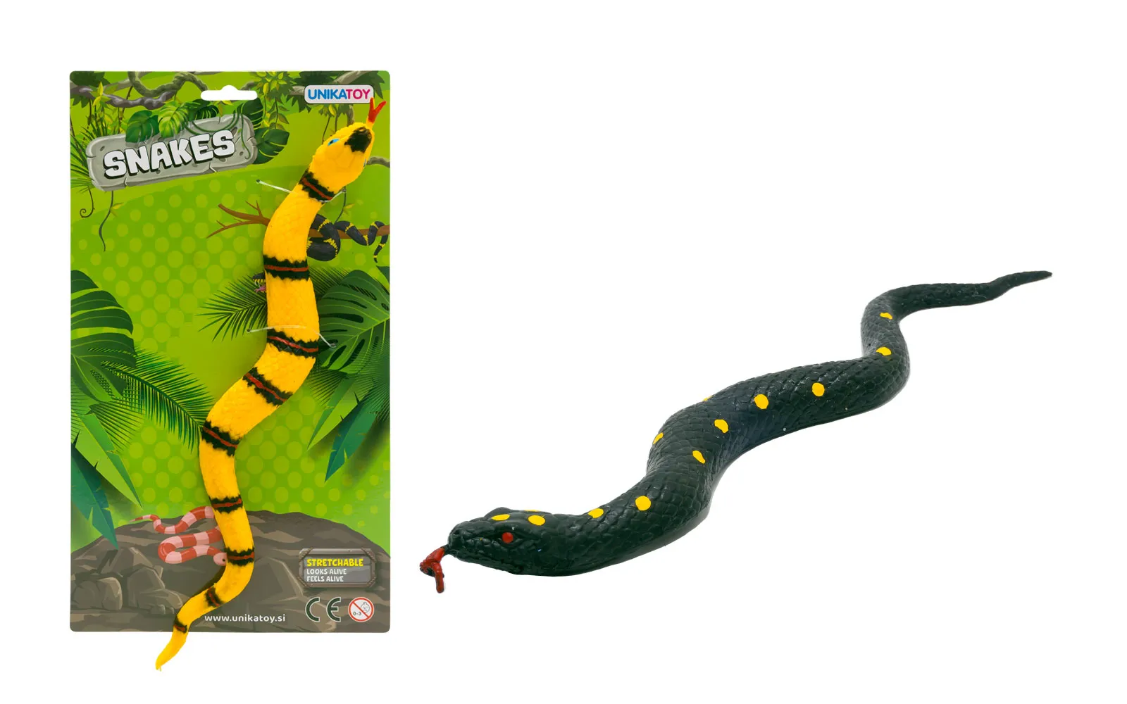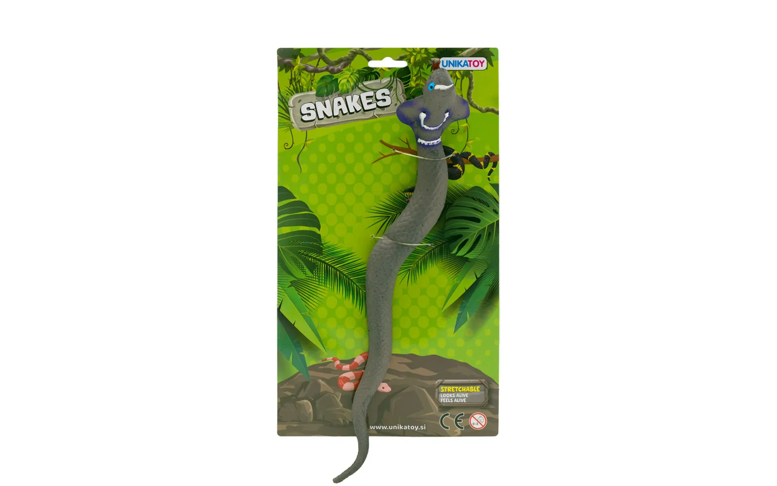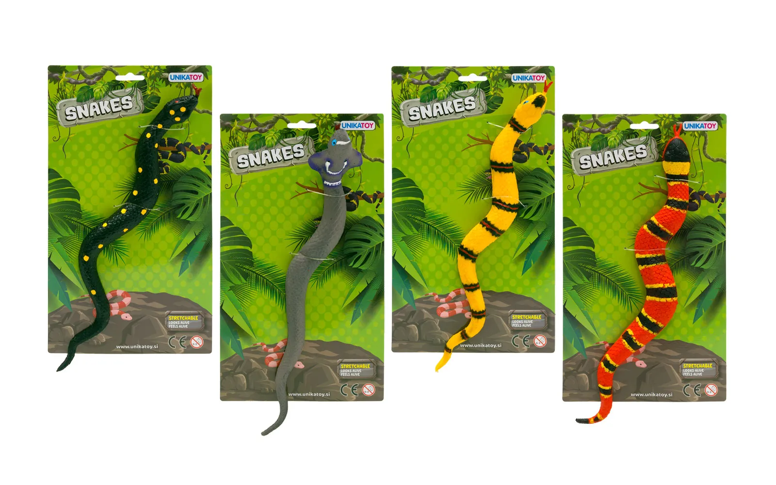 4 različnih raztegljivih in mehkih kač. Dolžina kač je med 30 cm in 34 cm.