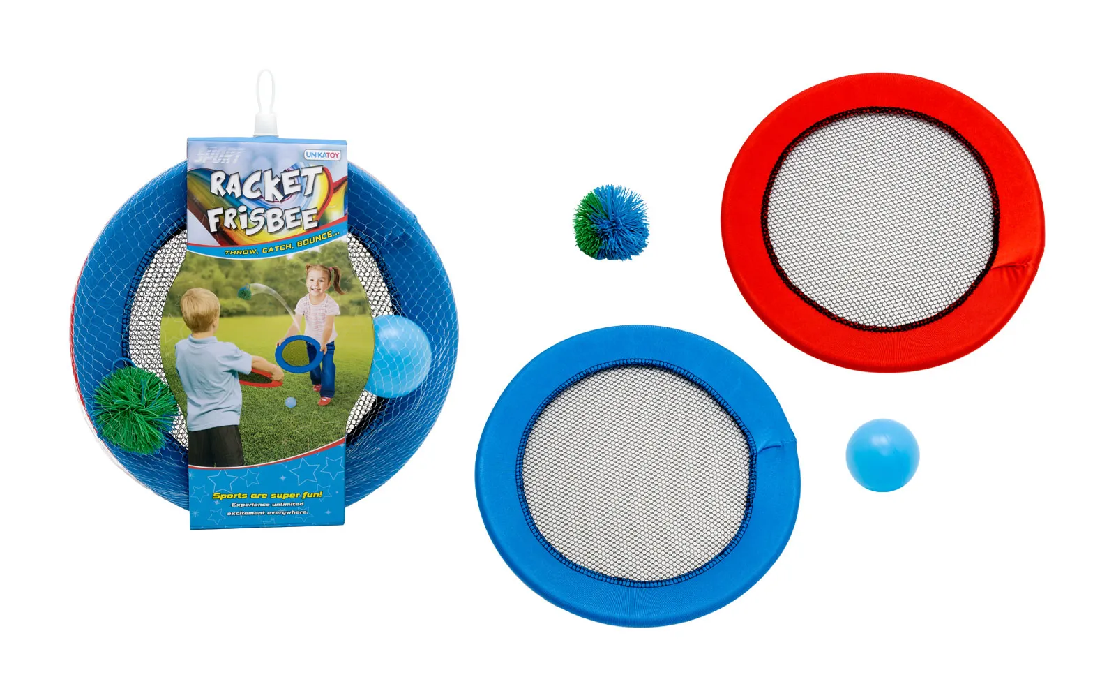 Set 2 lopar frizbijev, Unikatoy - v rdeči in modri barvi. Setu sta priloženi tudi 2 žogici.
