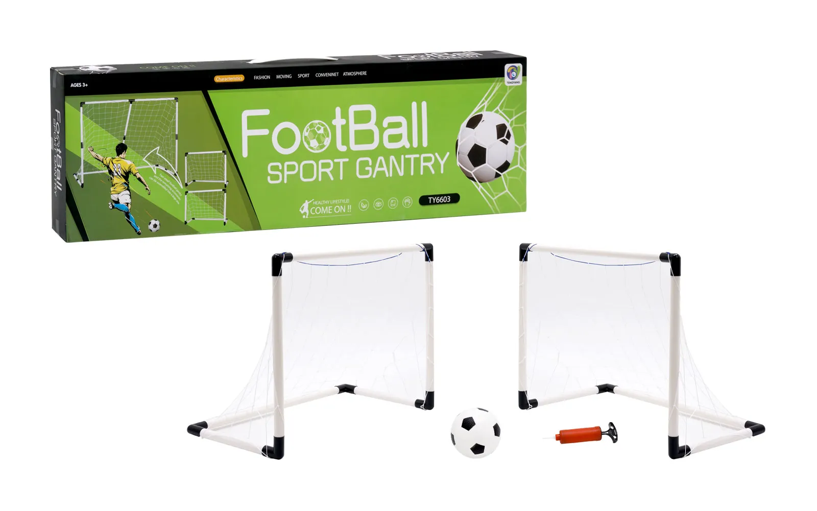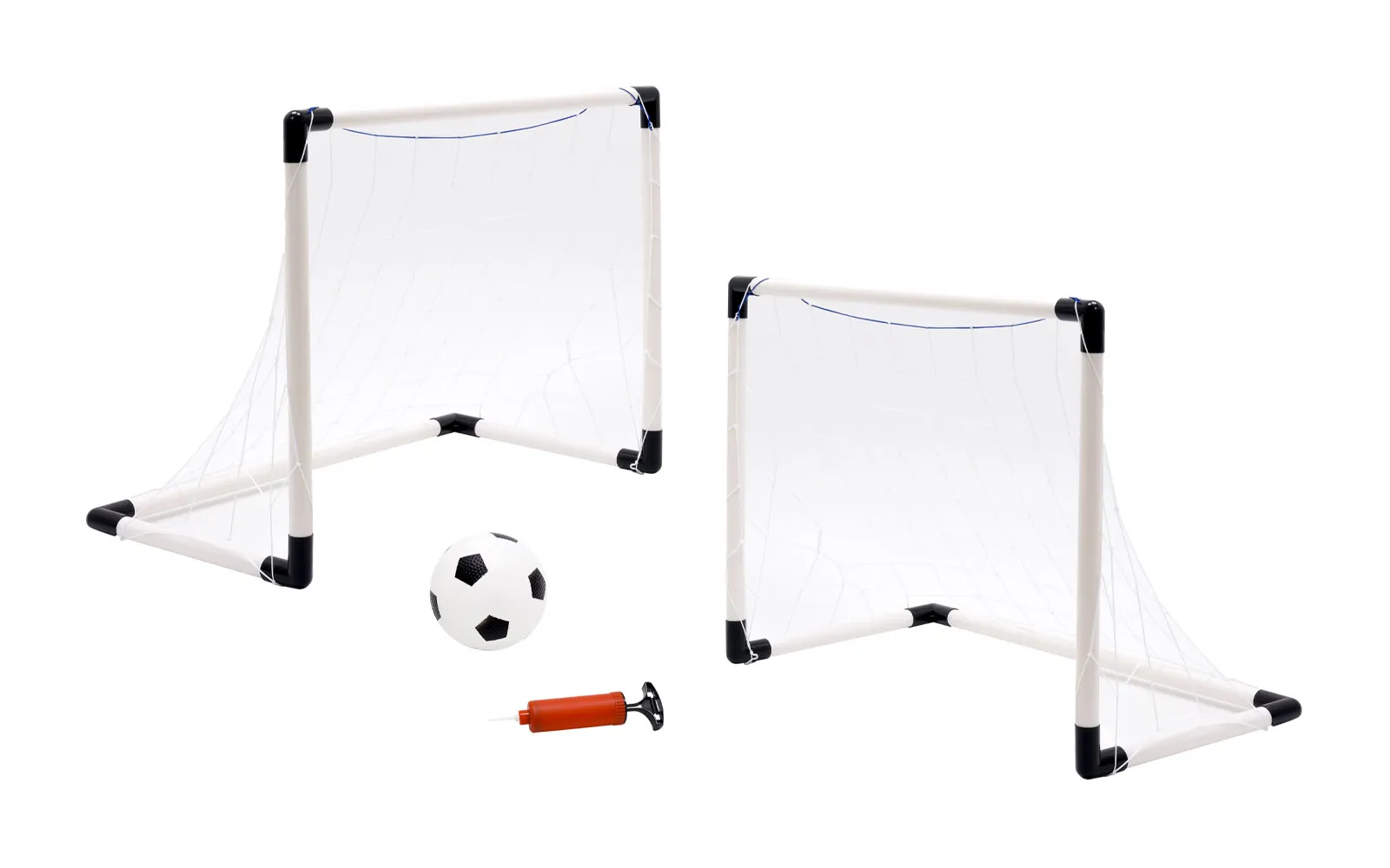 RIPRAVITE SE NA NOGOMETNI TURNIR! Set nogometnih golov 2v1, MINI je popolna izbira za vse mlade nogometaše, ki želijo izboljšati svoje strele in organizirati razburljive tekme s prijatelji! Postavite gole, napolnite žogo in zabava se lahko začne. POPOLN SET ZA IGRO NA PROSTEM IN DOMA: Nogometni set vključuje dva gola dimenzij 66.5 x 70 x 20.5 cm, ki ju lahko enostavno sestavite in postavite na katerokoli igrišče. Zaradi svoje velikosti sta idealna za igranje na vrtu, v parku ali celo v večjih notranjih prostorih. VSE, KAR POTREBUJETE ZA PRAVO TEKMO: Poleg dveh golov set vključuje tudi nogometno žogo in tlačilko, da boste vedno pripravljeni na igro. S tem kompletom bo vsak trenutek priložnost za trening in zabavo! VSEBINA: 2 nogometna gola (66.5 x 70 x 20.5 cm), Nogometna žoga, Tlačilka. Zgrabite svojo ekipo in se pripravite na dinamično igro, polno golov in veselja!