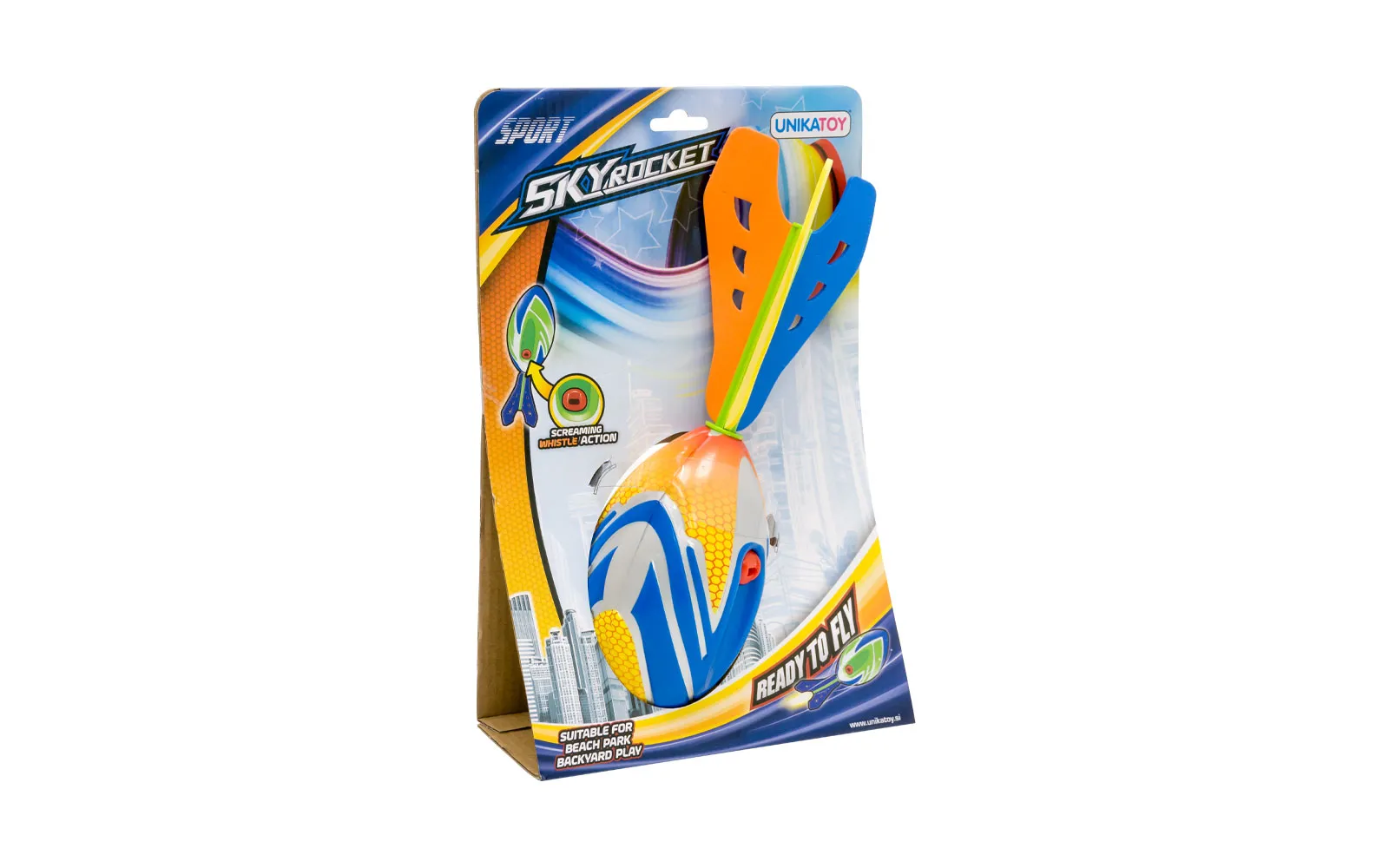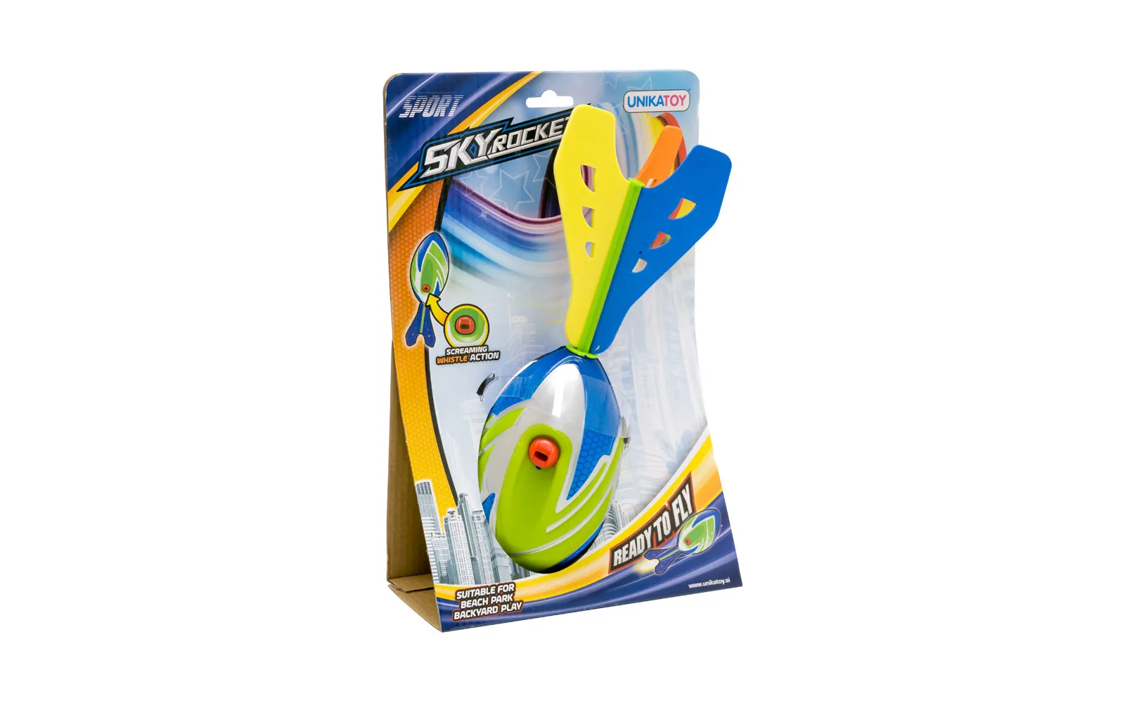 Penasta raketa z zvokom je kot nalašč za tekmovanje s prijatelji. Kako daleč pa tvoja leti? Na voljo oranžna ali zelena.