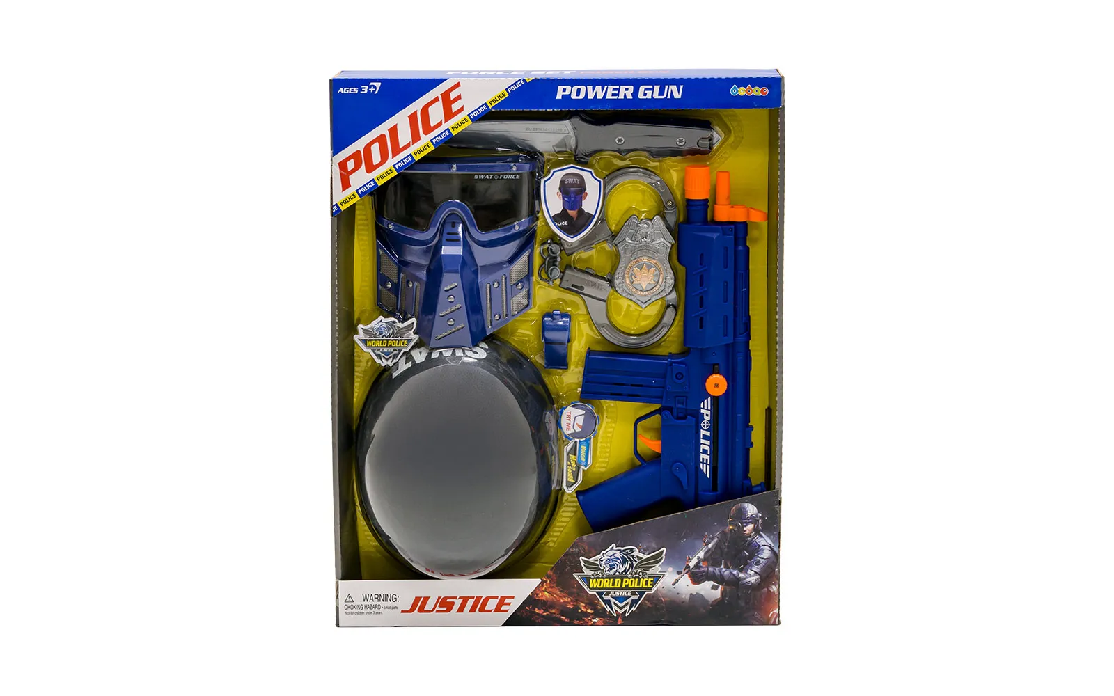 Počuti se kot pravi policist z odličnimi policijskimi pripomočki. Pustni policijski set s čelado je kot nalašč za otroke, ki si za pusta želijo postati policisti. Set vsebuje čelado, puško, lisice, oklep, značko ter druge super policijske pripomočke.