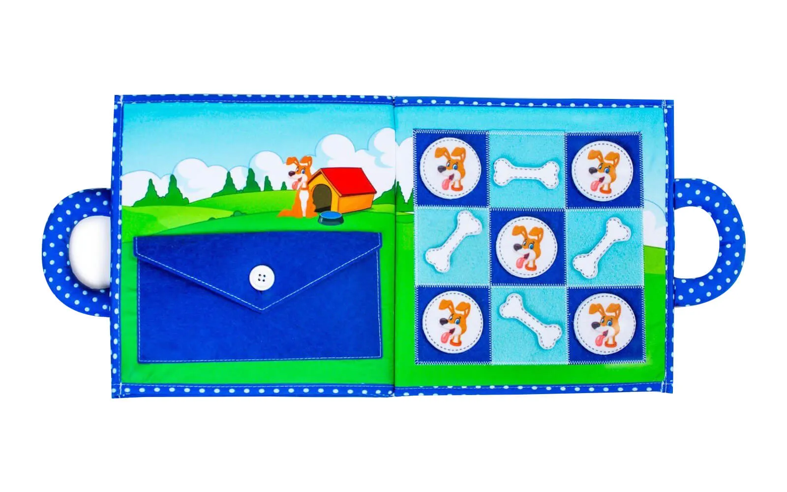 Ročno izdelana interaktivna tekstilna knjigica Piqipi-Kužek je tako imenovana tiha knjiga, s katero se otroci igrajo, ob tem pa se še veliko naučijo. Vsaka stran v knjigi ima unikatno igro v kateri se otrok uči številk, barv, oblik in še veliko več.