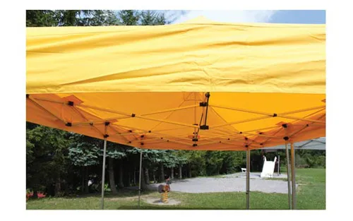 Dogodek na prostem, sonce ali pa napoved dežja. Ne vznemirjajte se, ampak si priskrbite rumeno tendo velikosti 3x6 m z aluminijasto konstrukcijo ter ognjevarno in vodoodporno ponjavo narejeno iz 230 g poliestra s PU in srebrnim UV premazom. Set sestavljajo še transportna torba, vrvice in klini. Ogrodje velikosti 29 mm. Tendo pa lahko dopolnite še z različnimi stranicami: stranica z navadnim ali stilskim oknom, polna stranica ali stranica z vrati.
