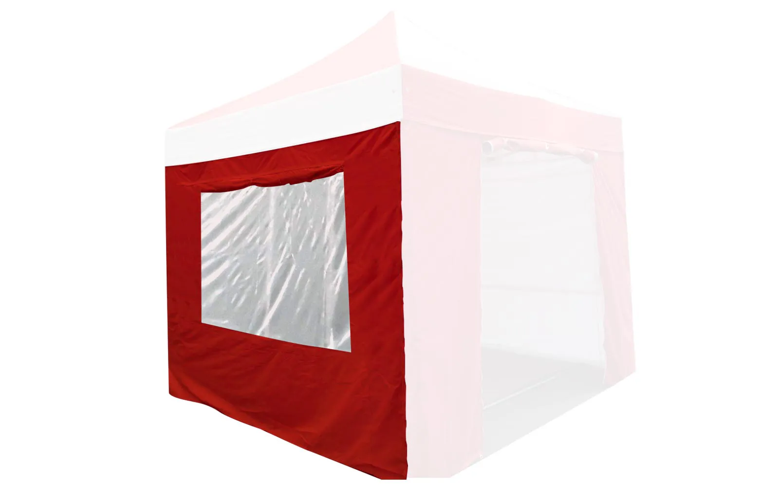 Rdeča stranica tende velikosti 3 m z oknom narejena iz 230 g poliestra s PU in srebrnim UV premazom, je ognjevarna in vodoodporna. Prozorno okno stranice je lahko odprto ali zaprto.
