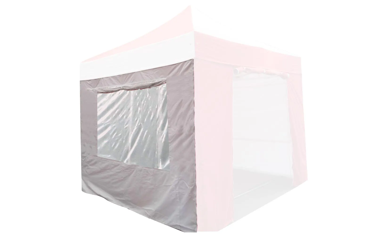 Bela stranica tende velikosti 3 m z oknom narejena iz 300 g poliestra s PU in srebrnim UV premazom, je ognjevarna in vodoodporna. Prozorno okno stranice je lahko odprto ali zaprto.