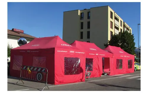 Rdeča polna stranica tende velikosti 3 m narejena iz 230 g poliestra s PU in srebrnim UV premazom, je ognjevarna in vodoodporna.