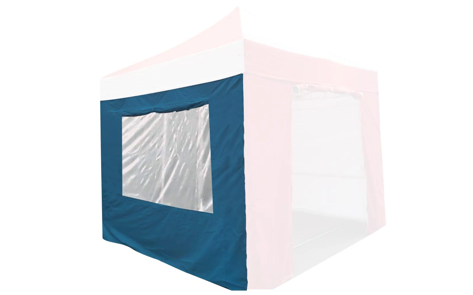 "Sky" modra stranica tende velikosti 3 m z oknom narejena iz 230 g poliestra s PU in srebrnim UV premazom, je ognjevarna in vodoodporna. Prozorno okno stranice je lahko odprto ali zaprto.